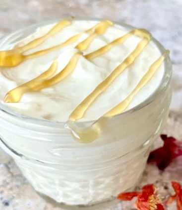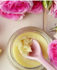 If you suffer from dry patches, this rich and nourishing recipe is what you need. Crafted with luxurious ingredients like shea butter, cocoa butter, coconut oil, and essential oils, it delivers an extra boost of hydration. Think of it as a drink for your skin that leaves it soft, supple, and beautifully revitalized!
