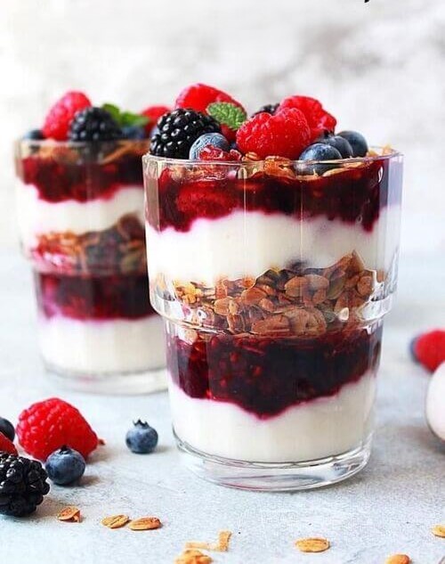 • Main Ingredients: Apples, Blackberries, Whole-wheat Bread Slices, Coconut oil, Coconut Yogurt
