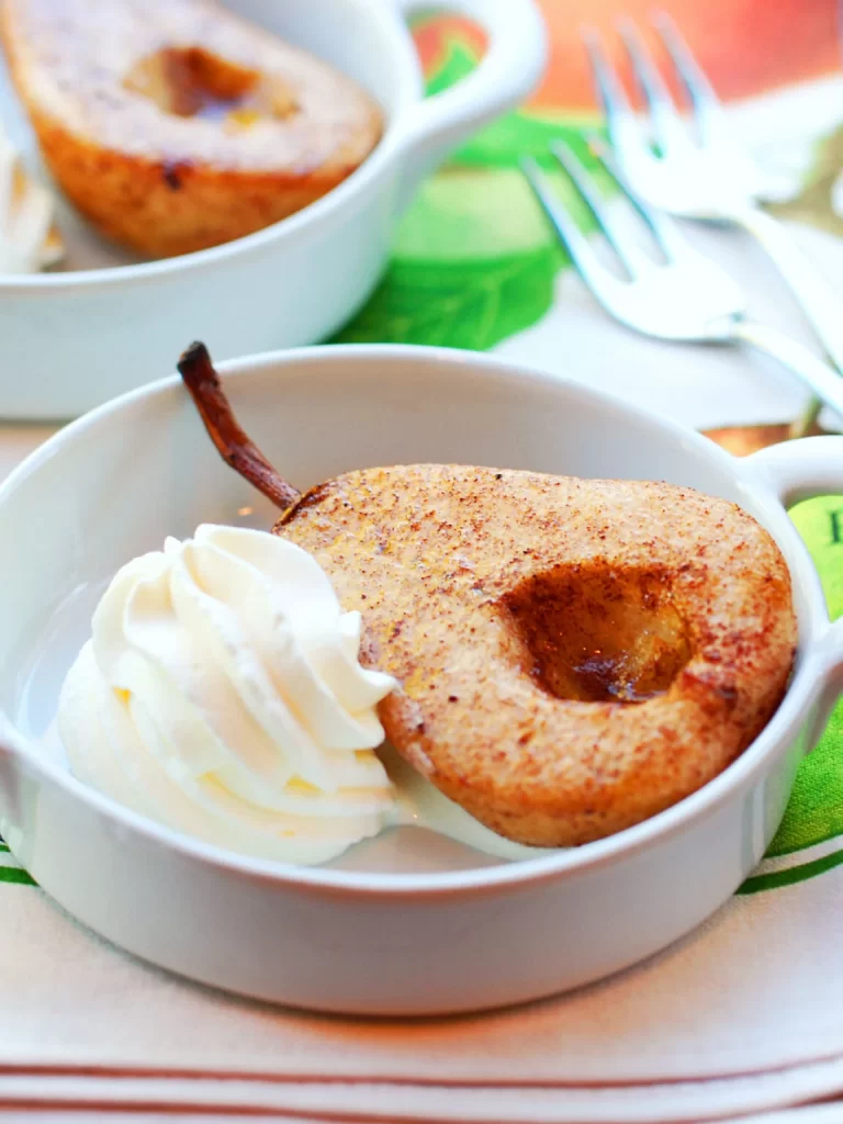 The first recipe for our healthy fall desserts is as simple as it sounds: baked pears